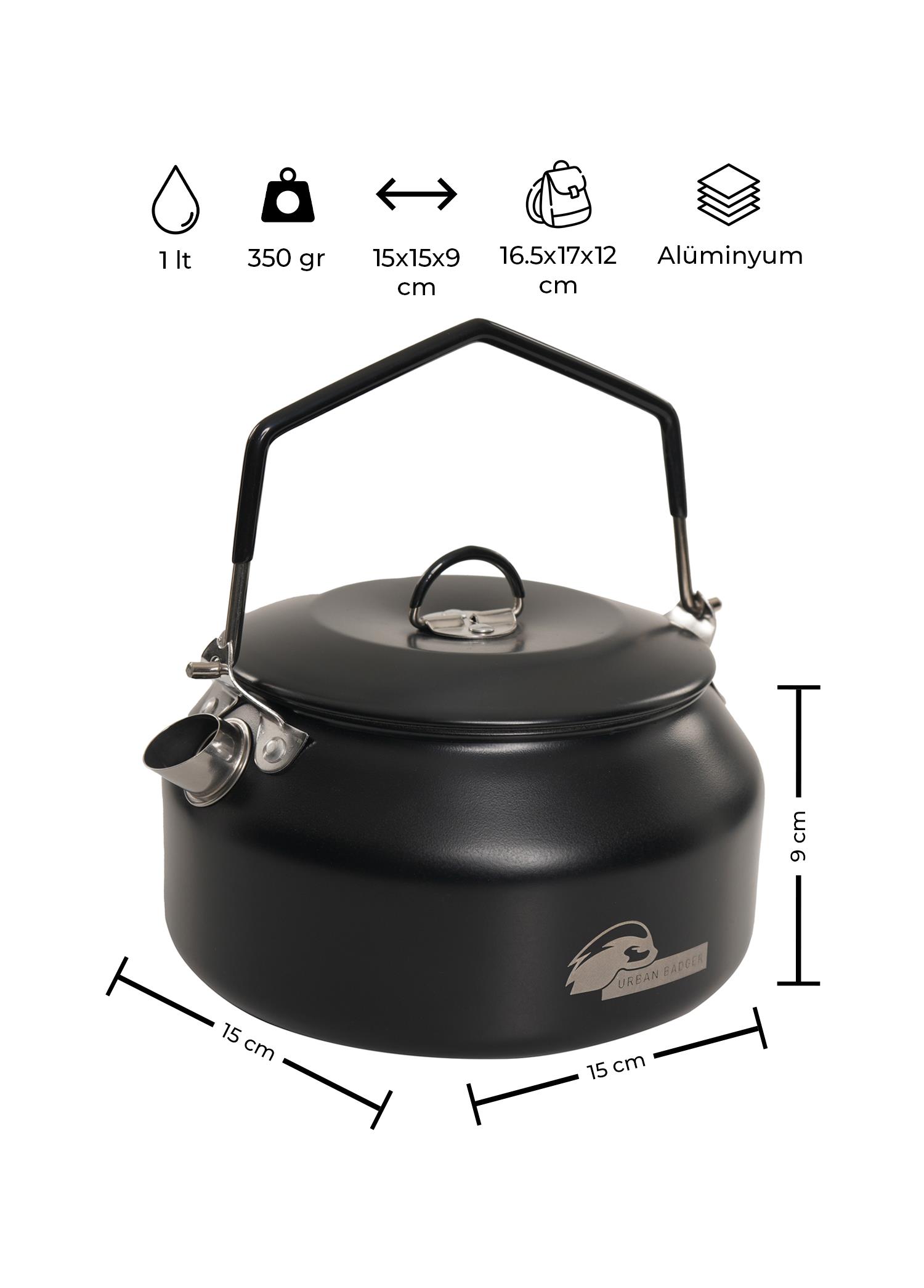 Urban Badger Balbal 1 Litre Siyah Renkli Kamp Çaydanlık